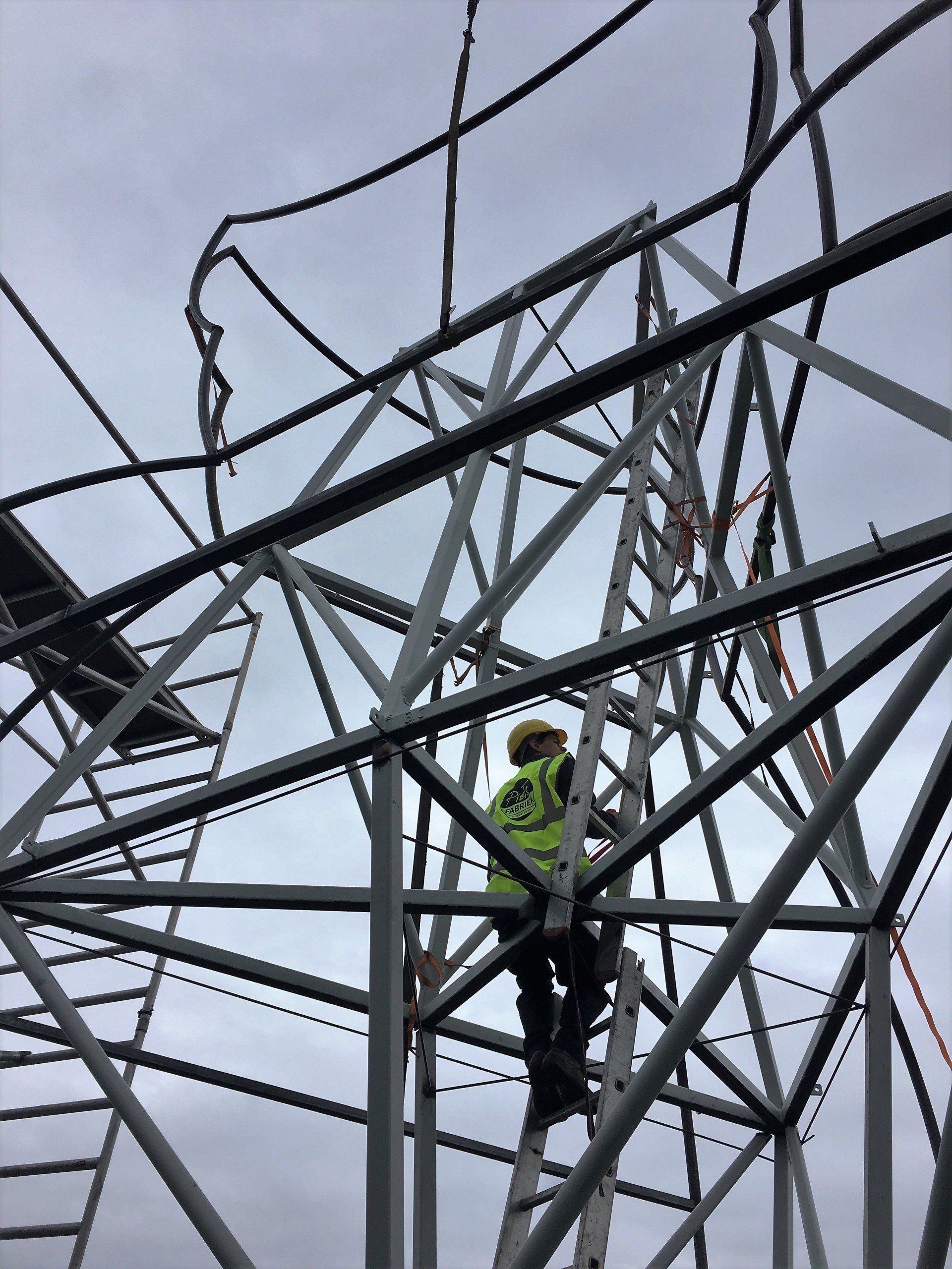 12 meter hoog, gemaakt van staal, ijzer en veel restmaterialen en het is een pareltje geworden. Echter, het verhaal achter de realisatie is nog veel mooier.