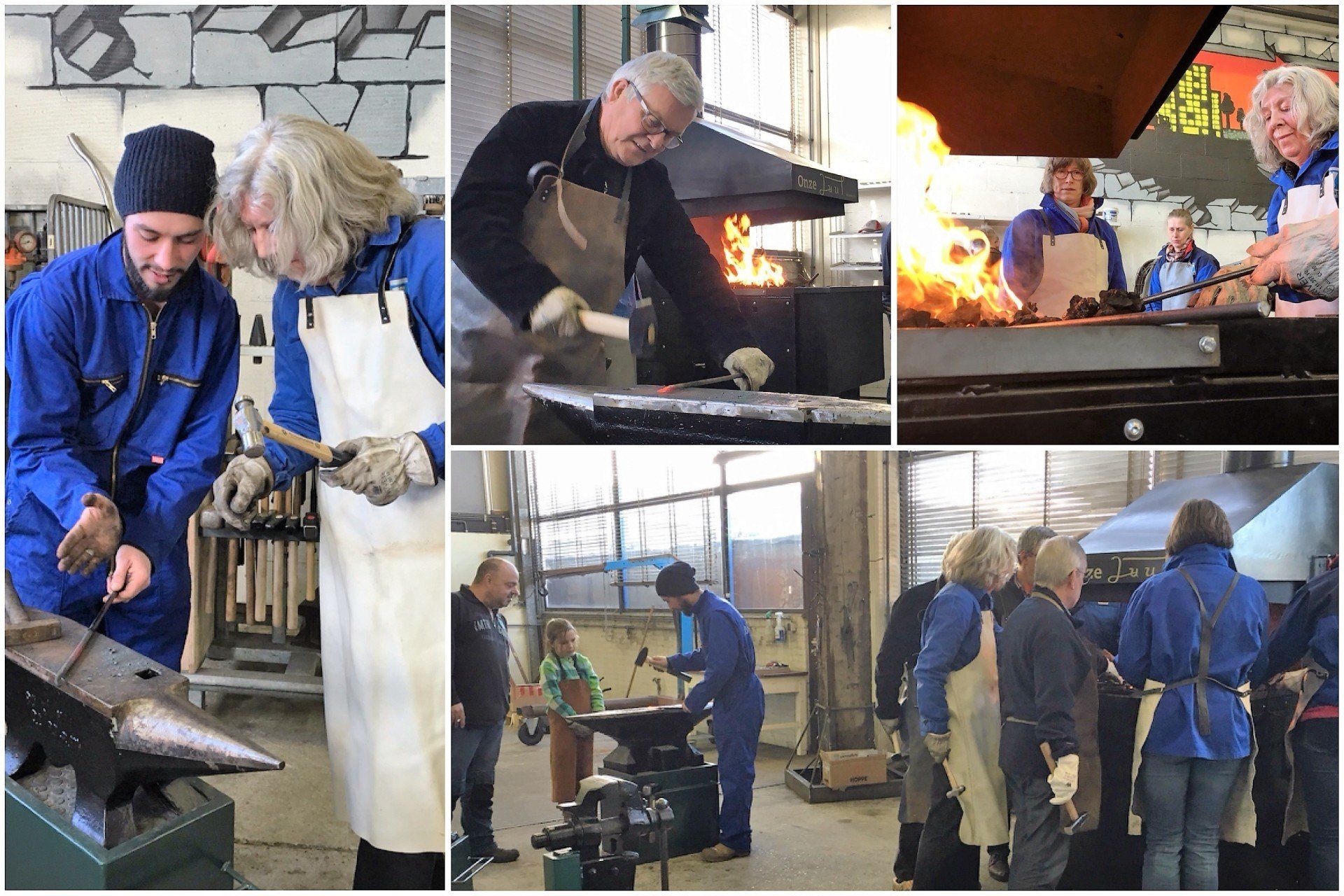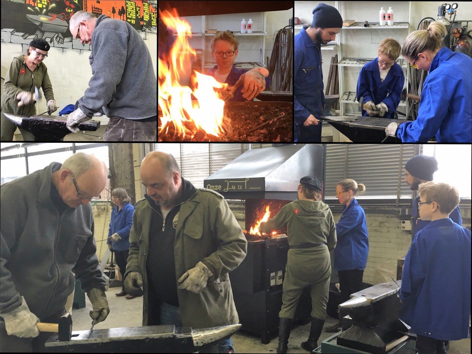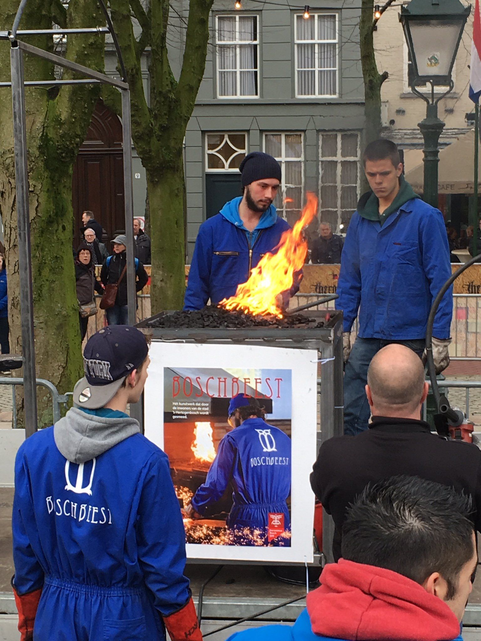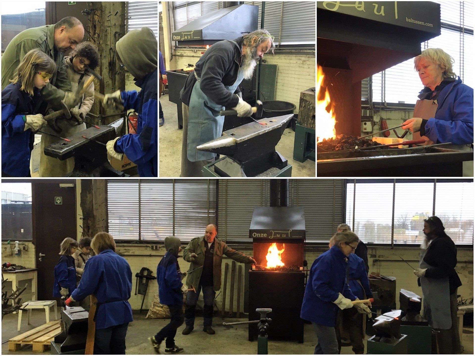Naast al het lassen, slijpen en overige metaalbewerking staan die jonge gasten tijdens een workshop Smeden ook ineens uitleg te geven voor een grote groep Bosschenaren, met natuurlijke autoriteit vanuit hun ervaring.