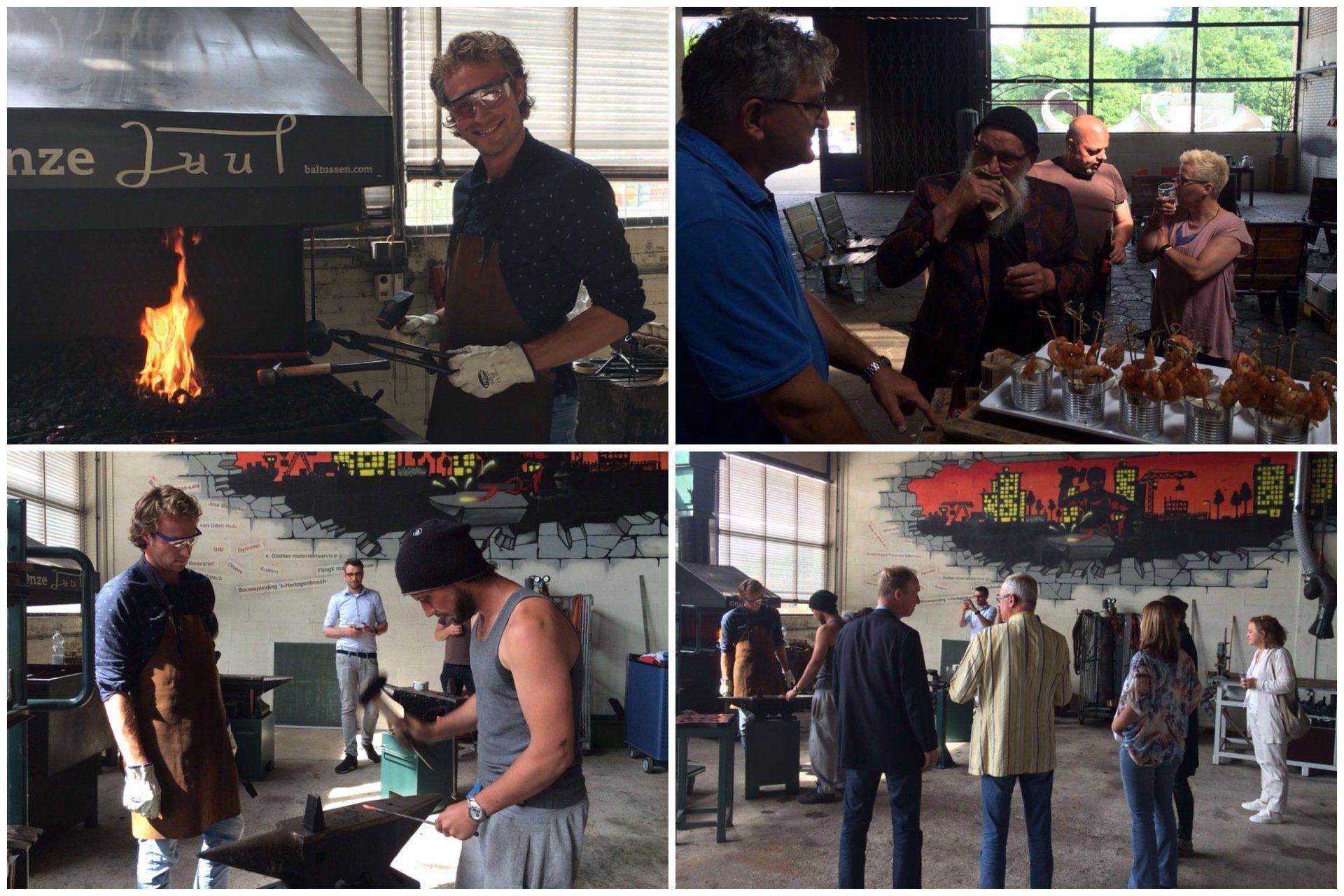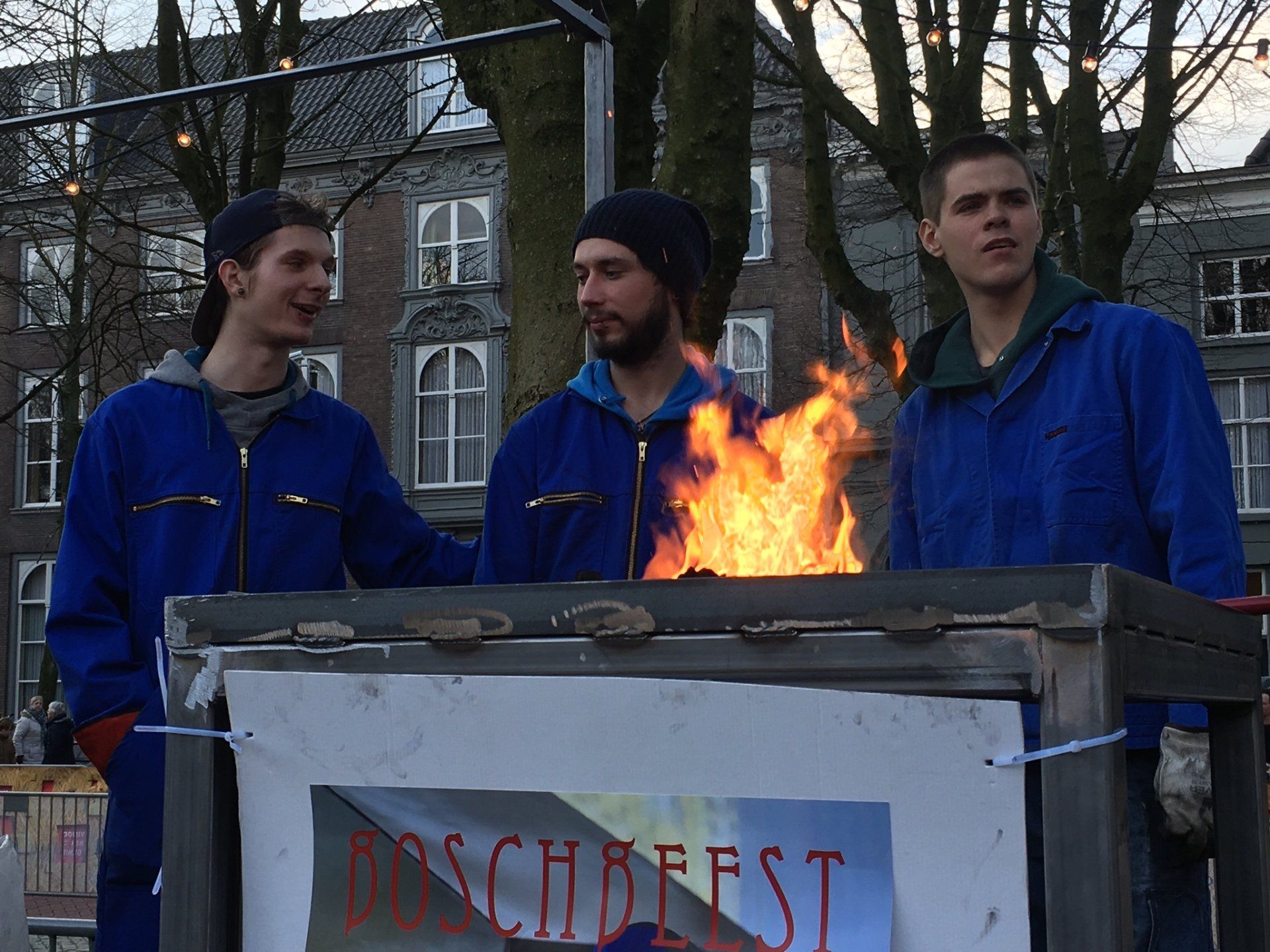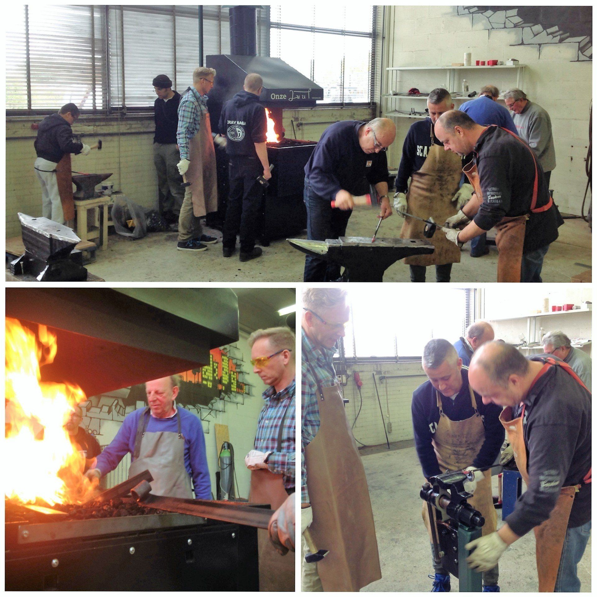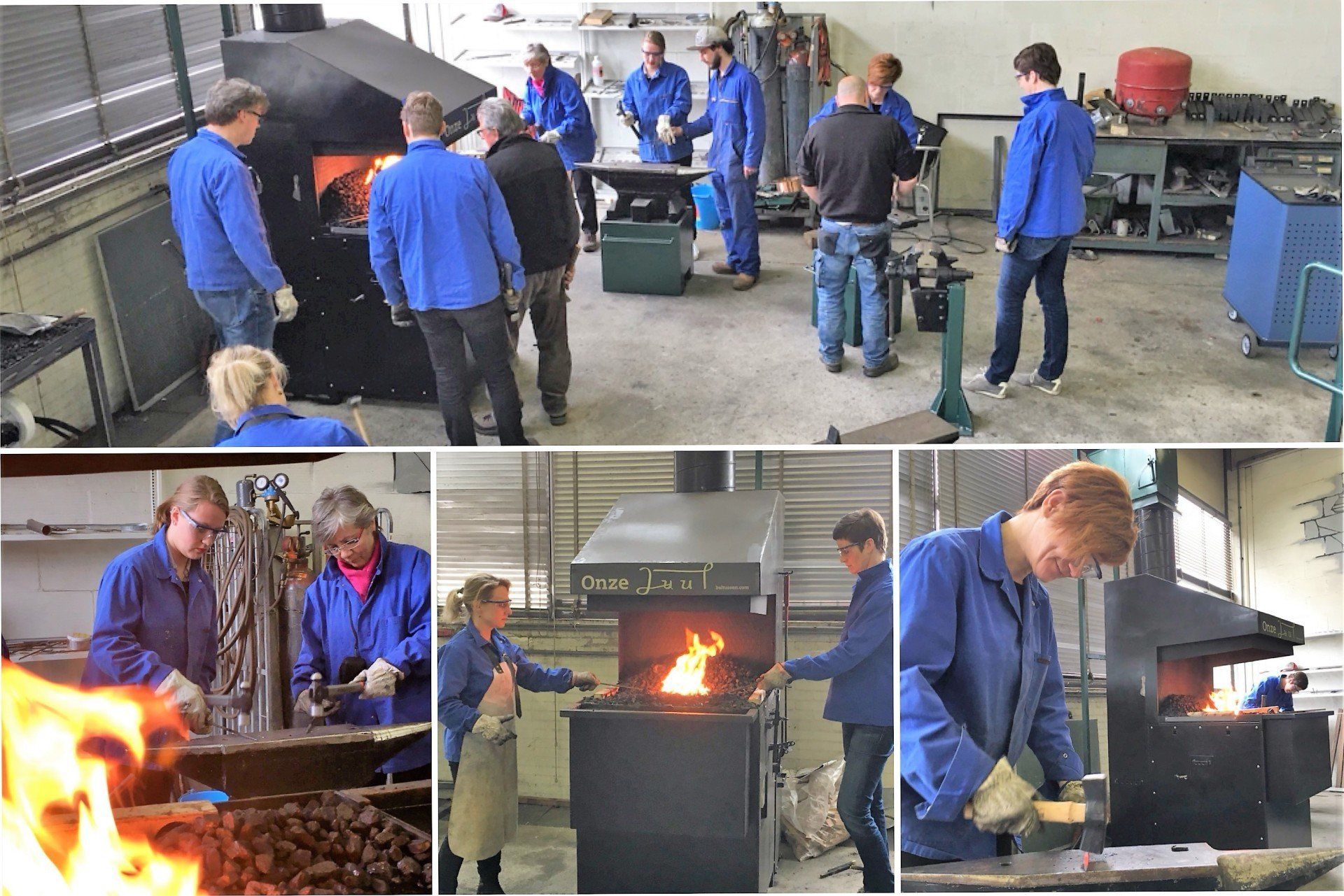 Naast al het lassen, slijpen en overige metaalbewerking staan die jonge gasten tijdens een workshop Smeden ook ineens uitleg te geven voor een grote groep Bosschenaren, met natuurlijke autoriteit vanuit hun ervaring.