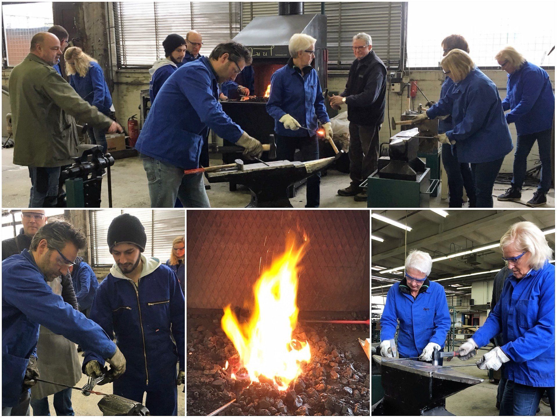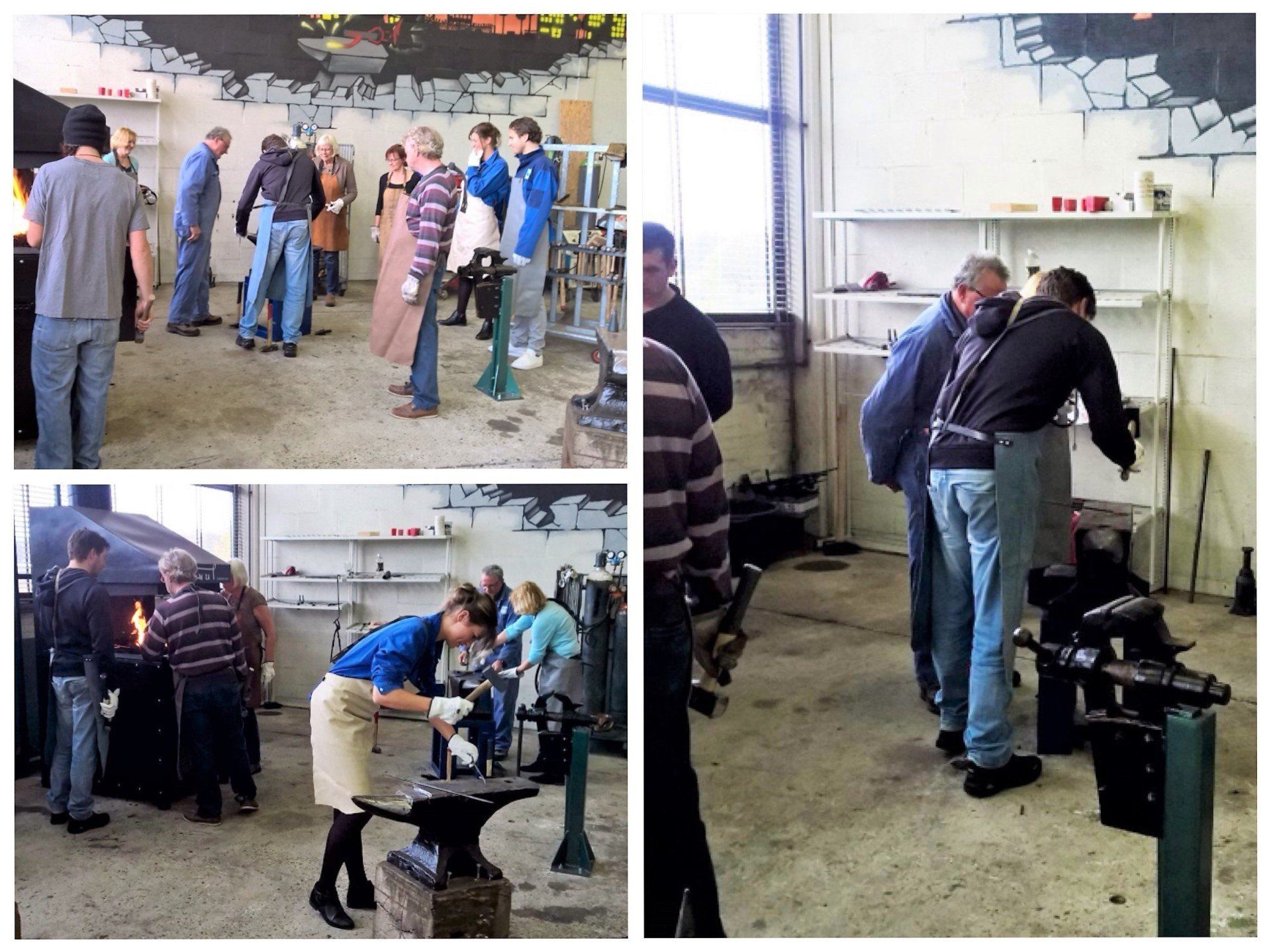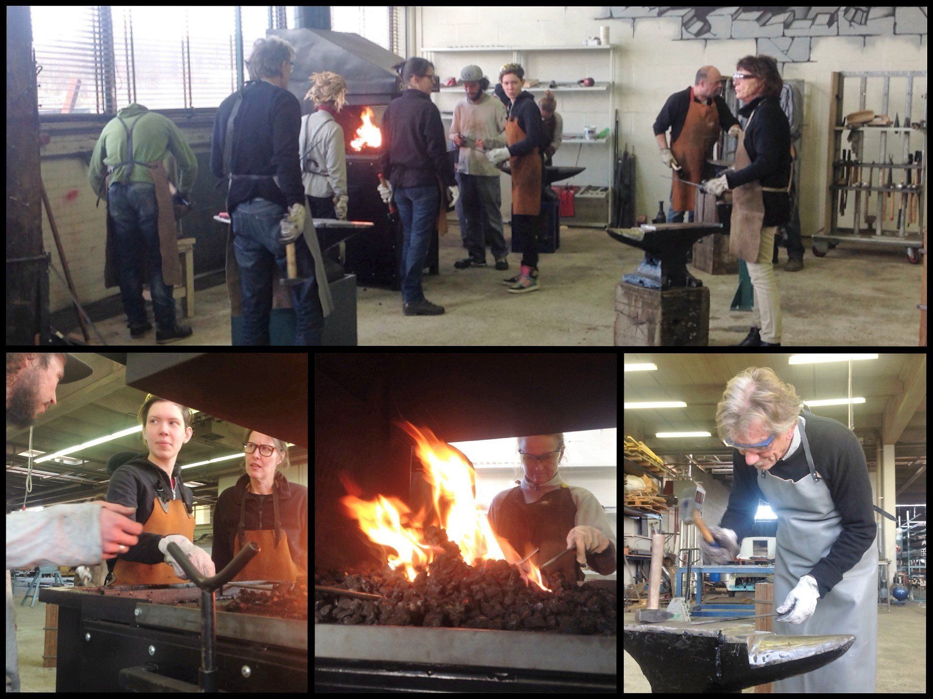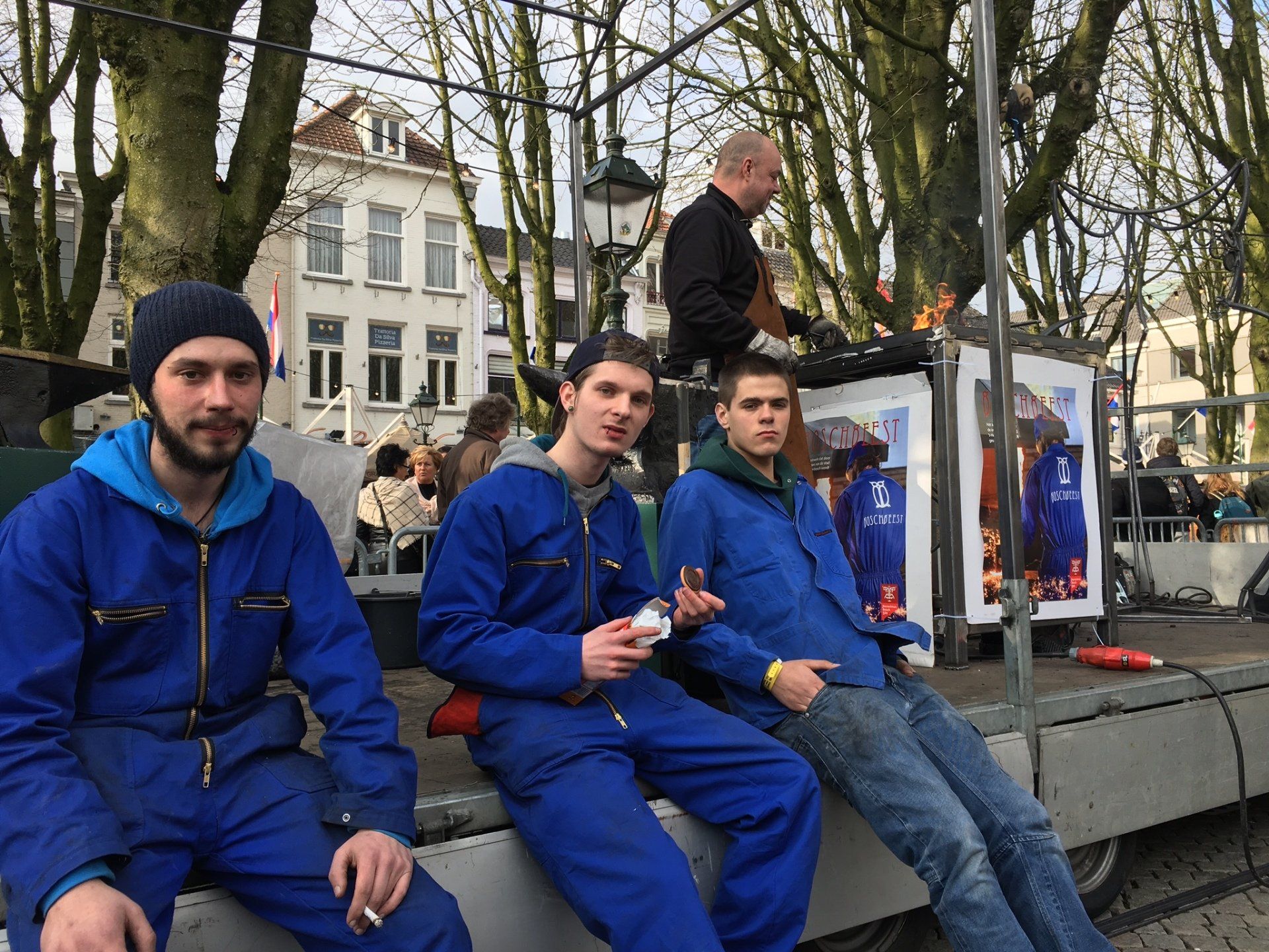 Naast al het lassen, slijpen en overige metaalbewerking staan die jonge gasten tijdens een workshop Smeden ook ineens uitleg te geven voor een grote groep Bosschenaren, met natuurlijke autoriteit vanuit hun ervaring.