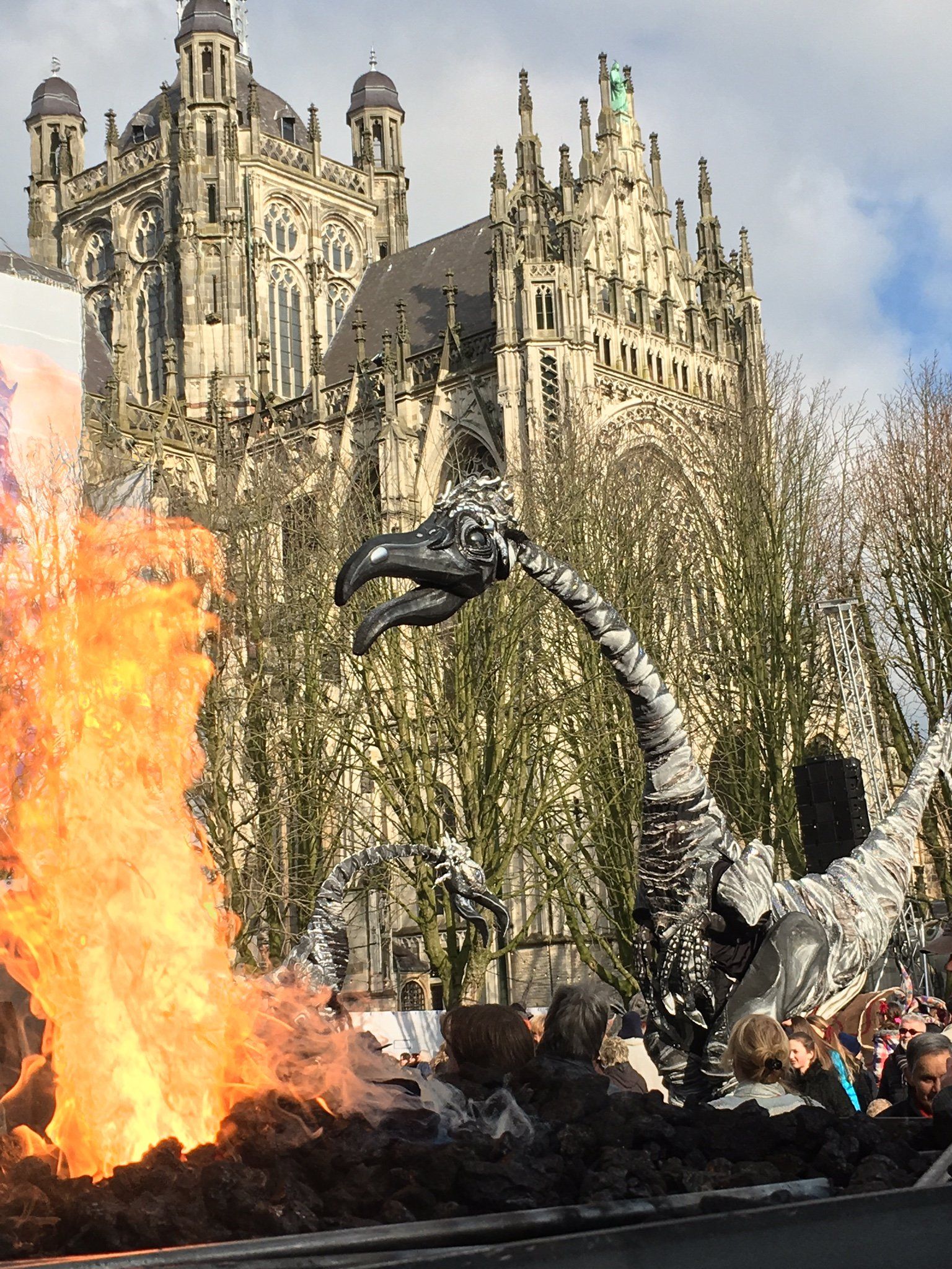 "Het is zover. Het BoschBeest, een 12 meter hoog kunstwerk in de vorm van een uil voor de officiële afsluiting van het Jheronimus Bosch 500-jaar, is geplaatst op het Wilhelminaplein in ’s-Hertogenbosch.