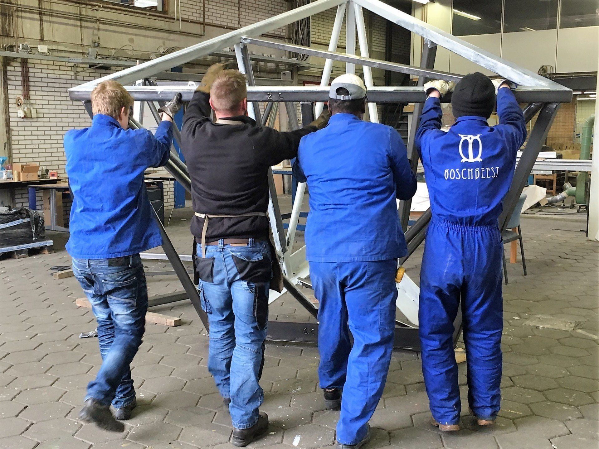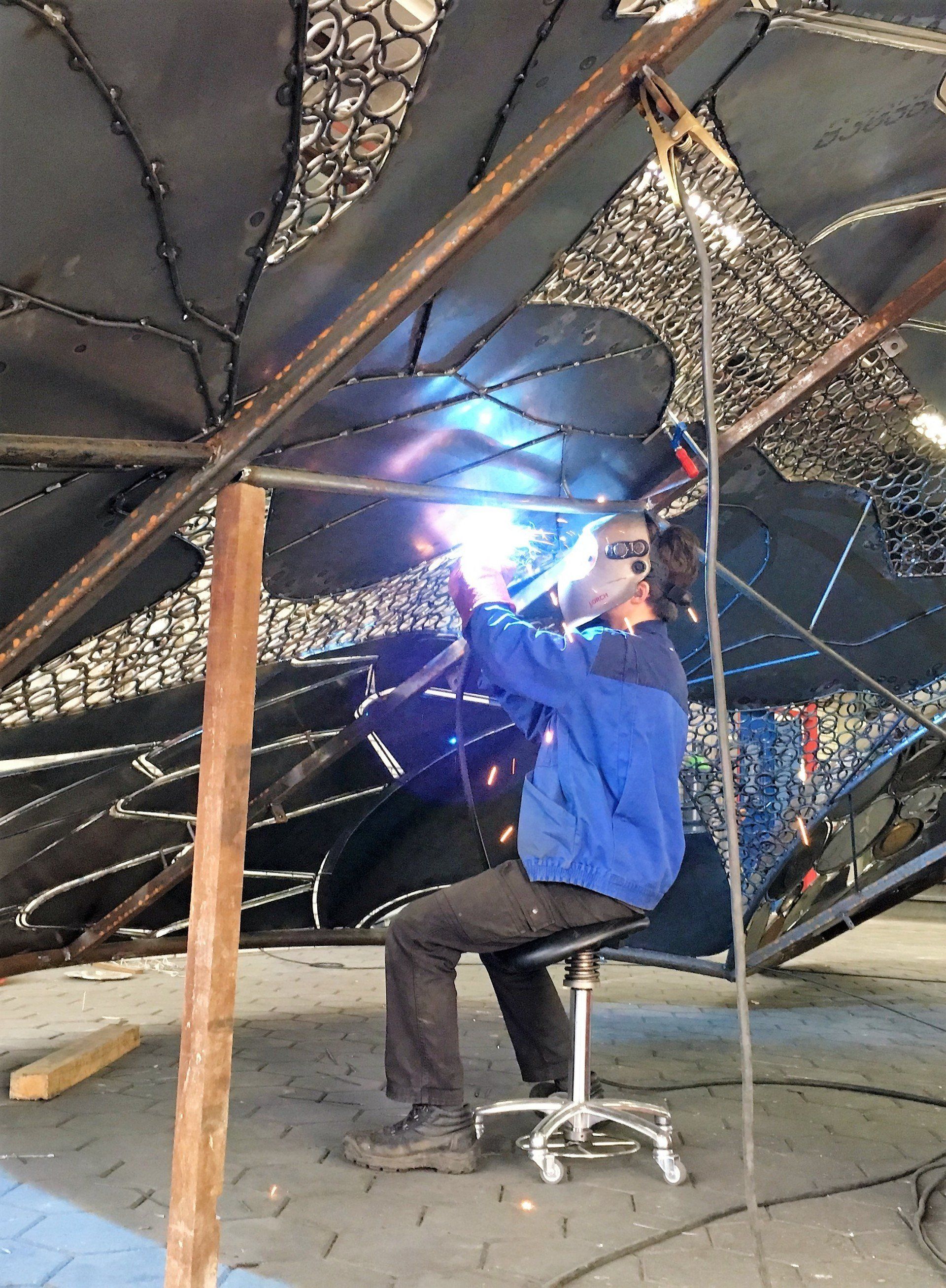 De productie van het beeld was nogal een uitdaging. In deze bijzondere uitdaging konden Paul, met zijn technische kennis, en de jongeren van Opis echter al hun creativiteit kwijt.